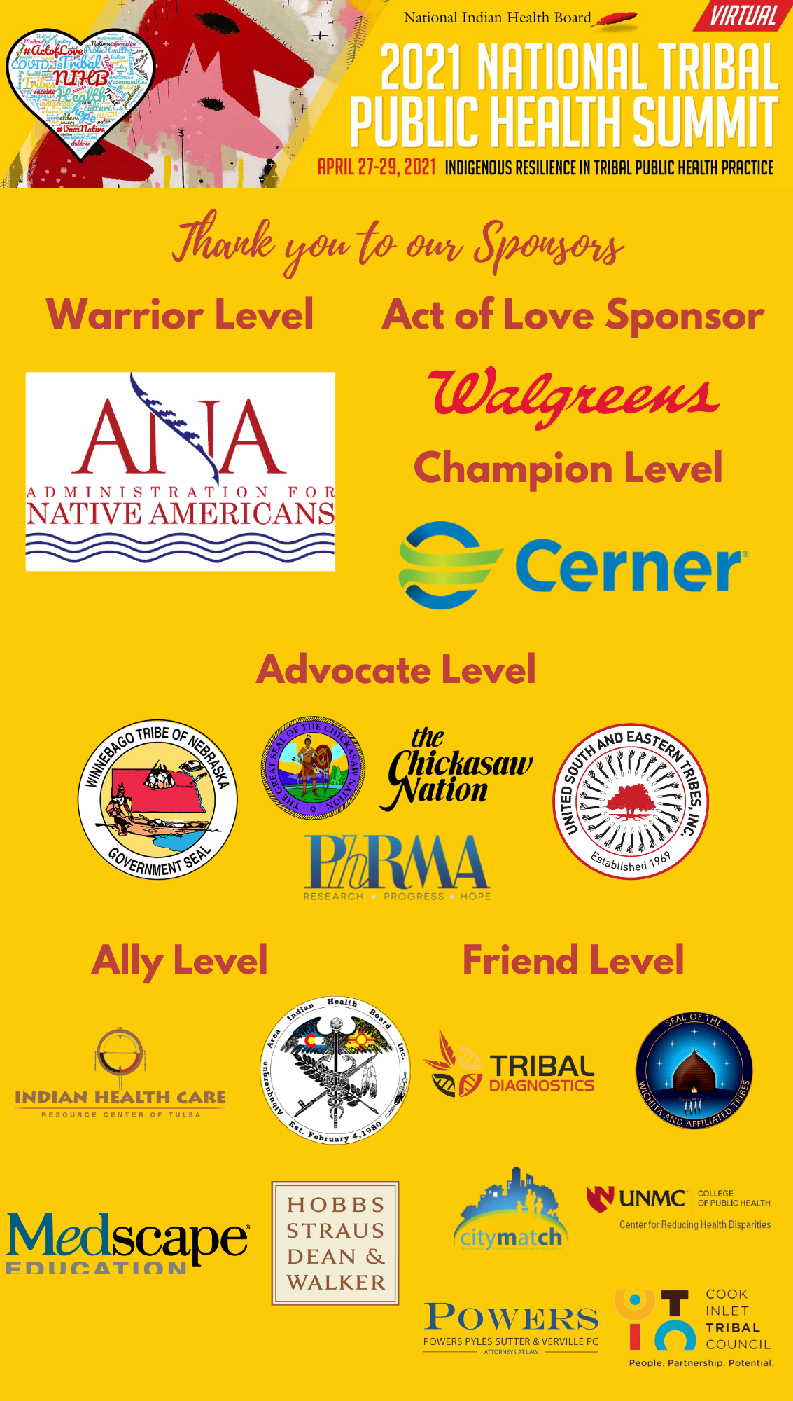 Thank you to all attendees, sponsors, exhibitors, federal partners, and community members that made this National Tribal Public Health Summit a great success.